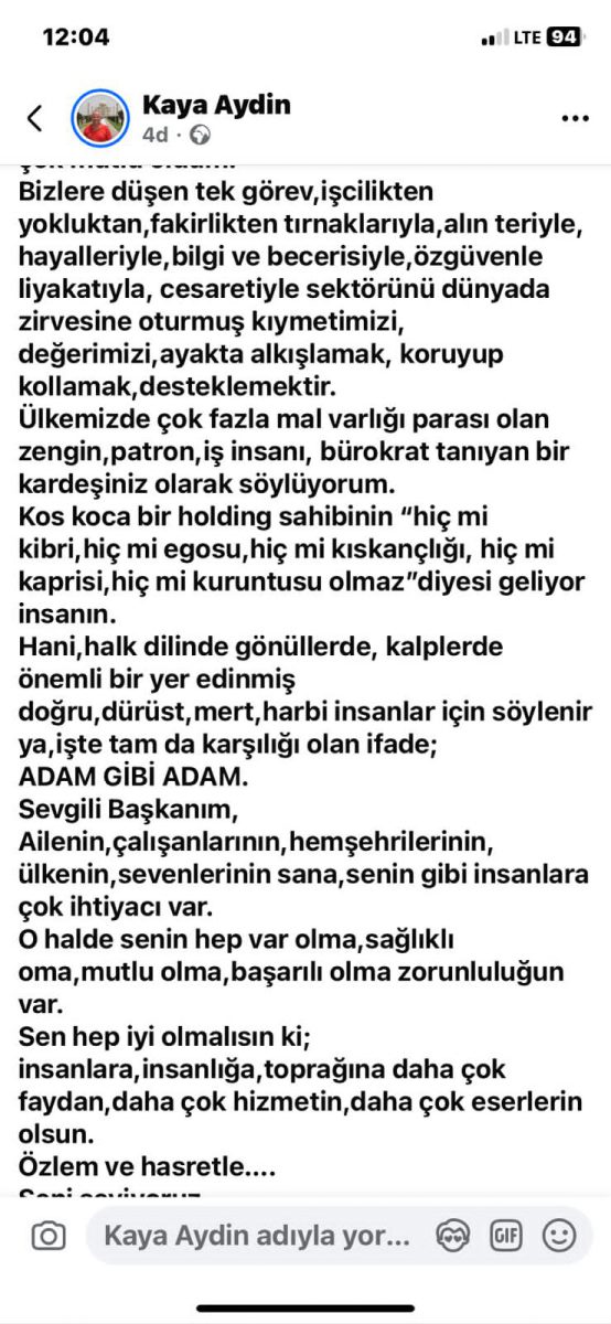 Eğitimci Kaya Aydın’ın Sayın Öner Hekim İçin Paylaşımları